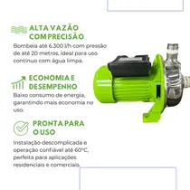 A Bomba Centrífuga Eurobombas é adequada para uso com água limpa e líquidos que não sejam quimicamente agressivos aos materiais de que a bomba é feita.