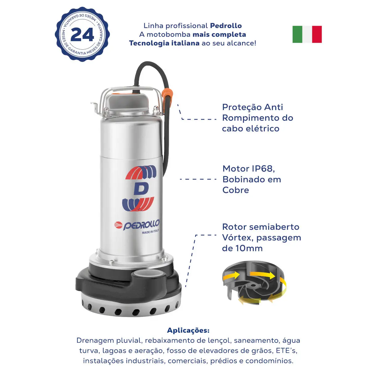 Bomba Submersível Pedrollo Agua Turva Dm10-N 1CV Trifásico 220v